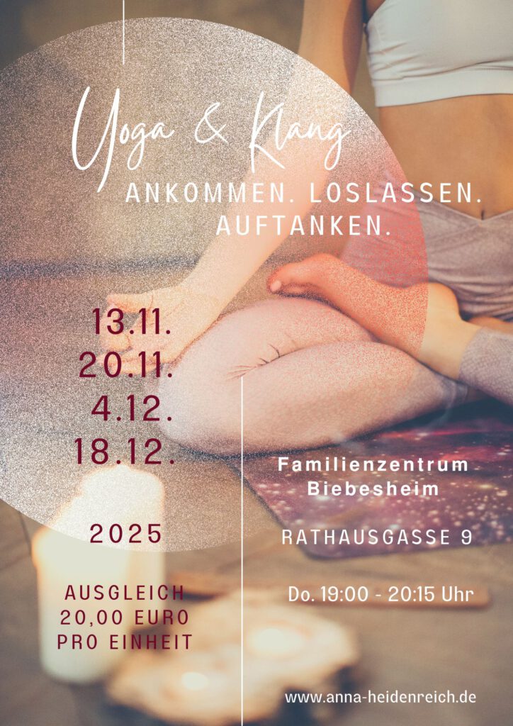 Bewegung, Klang und Stille schafft Raum für Regeneration auf allen Ebenen – körperlich, mental und energetisch.Sanfte öffnende Yogaübungen verbunden mit deinem Atem führen dich ins HIER und JETZT.